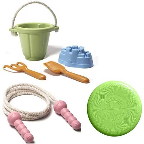 Green Toys Sand Play Set Plus Pink Jump Rope and EcoSaucer Flying Disc Review